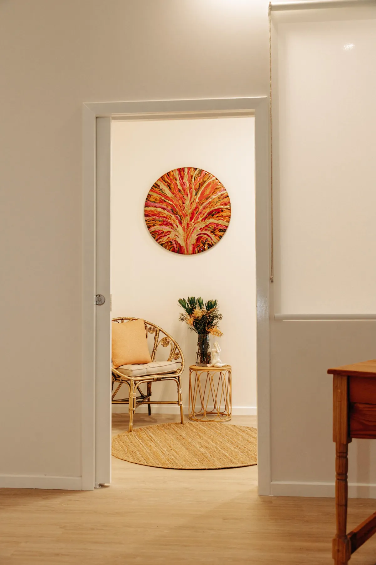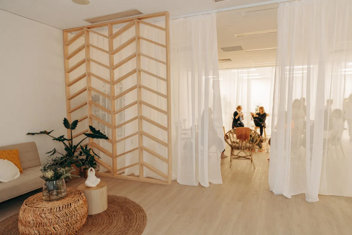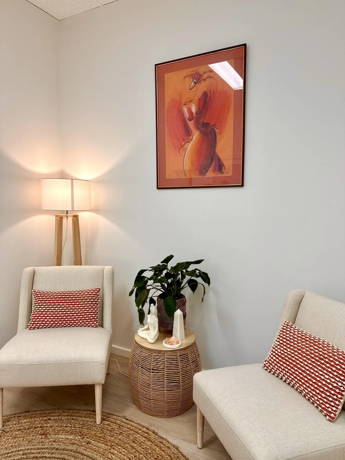 Our 10-square-metre consultation room is ideal for coaching, counselling, healing sessions, or online meetings. Intimate yet uncluttered, it features: